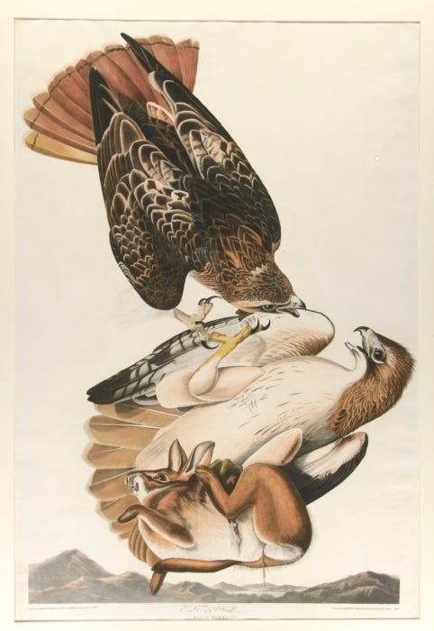 The second part of “Hurt Hawks” opens with the poem’s most troubling line. But it does serve the purpose of emphasizing the poet’s unwillingness simply to kill the hawk. “We had fed him for six weeks,” the poem tells us, then “gave him freedom” — but it’s a strange, ersatz freedom, for the hawk cannot fly and is simply free to find its death from starvation. After the hawk wanders “the foreland hill,” it returns, “asking for death.” And the poet grants him “the lead gift in the twilight.”